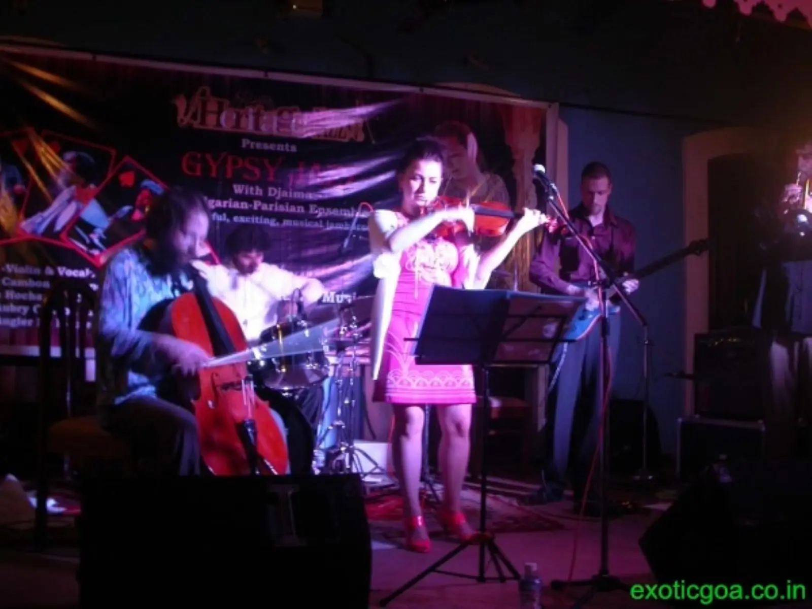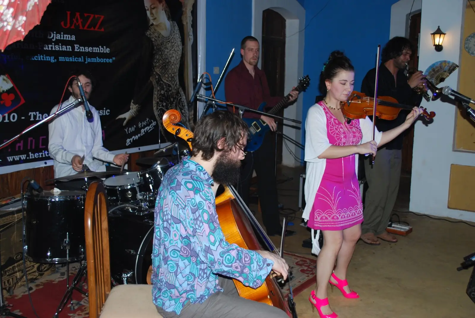 She was simply ravishing in a gorgeous pink dress with heels to match as she took stage at the Gonsalves Mansion on the eve of Republic Day; when Djaima and her band started, the home of jazz was crackling as if on hot coals. 8pm on a Monday meant people drove down after a hard day at work to chill out to some exciting music; some took a break from the grapes and enjoyed beer instead as they bobbed their heads to some superb Bulgarian-Parisian Gypsy jazz. With shows like this one, the year of Music 2010 is definitely rocking at Heritage Jazz creating huge success and buzz around the state and even the country. Always known for their exceptional quality events with a wide range of musicians, styles, genres and always giving the public something novel and exciting to come to, Heritage jazz hosted some mystery, magic and of course, music as Goans flocked to Campal, for a colourful, power packed gypsy party!