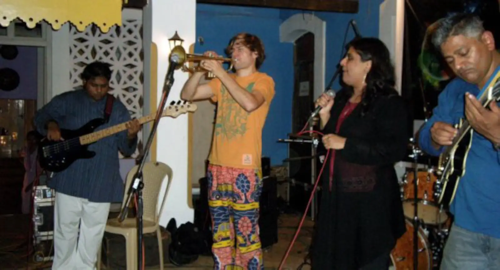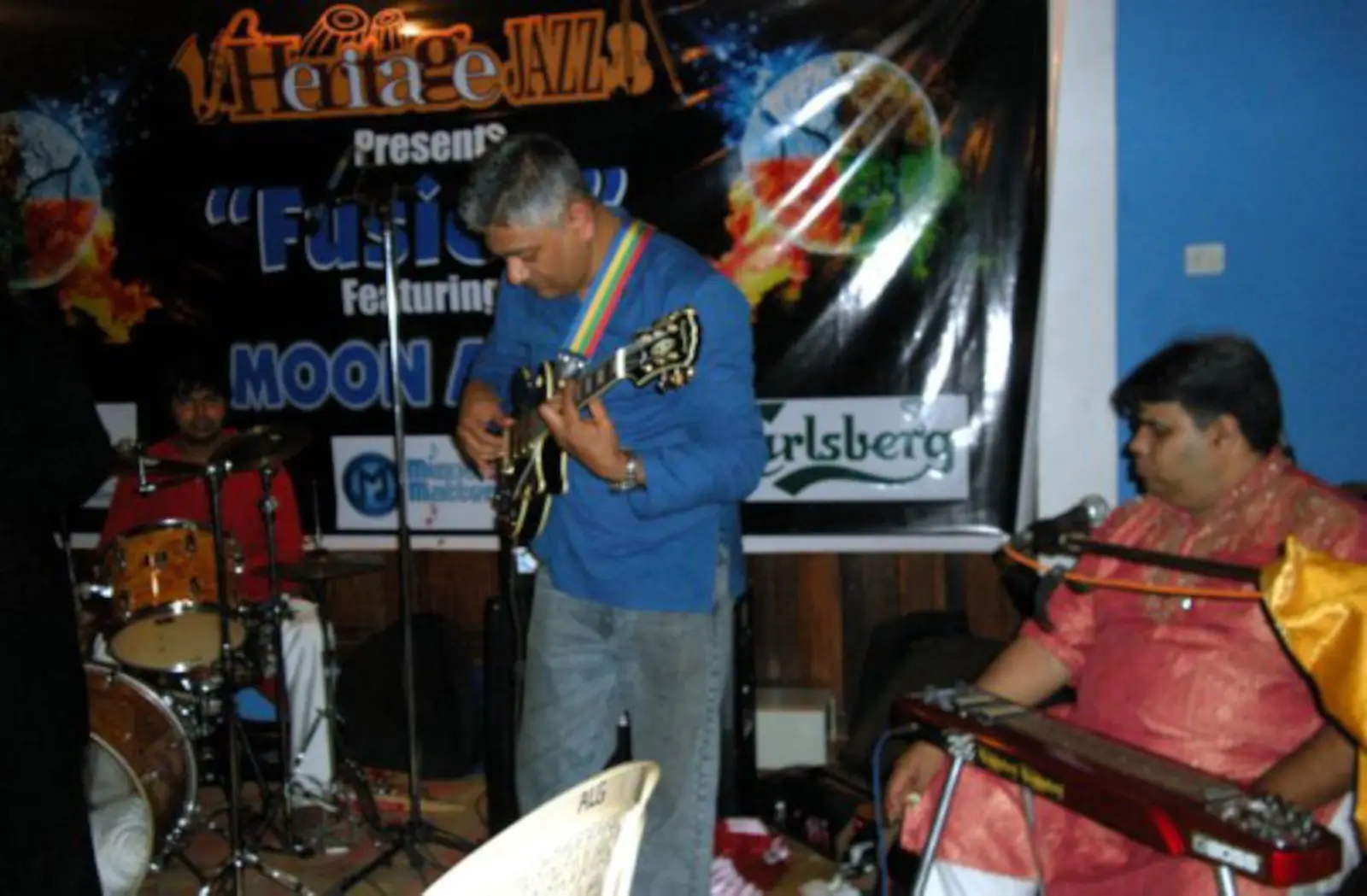 Sunday, the 3rd of January 2010, the courtyard at the home of jazz was sparking with enthusiasm, excitement and the hope that every New Year brings with it. After offering Goa a great musical buffet in 2009, Heritage Jazz was set to begin with a bang, and a bang it surely was! Each musician of this five member ensemble displayed talent, vibrancy and an electric charge. Jagdeesh M.R. led the band on the lead guitar, supported well by Prakash Sontakke on the Indian slide guitar with rich Indian classical sounds and a voice to match. While Madhuri tantalized with her deep, husky vocals, Kenneth Wilson entertained on bass guitar while Karthik Mani kept rhythm on the drums. MoonArra were joined by quirky jazz trumpeting whiz Matthias Shriefl from Germany who floored the audience with his impromptu performance. While Prakash was a strumming sensation on the slide guitar, Jagdeesh synchronized beautifully with him on the lead, producing amazing guitar magic that had the audience at the edge of their seats. Shriefl sizzled on his trumpet, picking up on the guitar fusion and translating it into some terrific trumpeting.