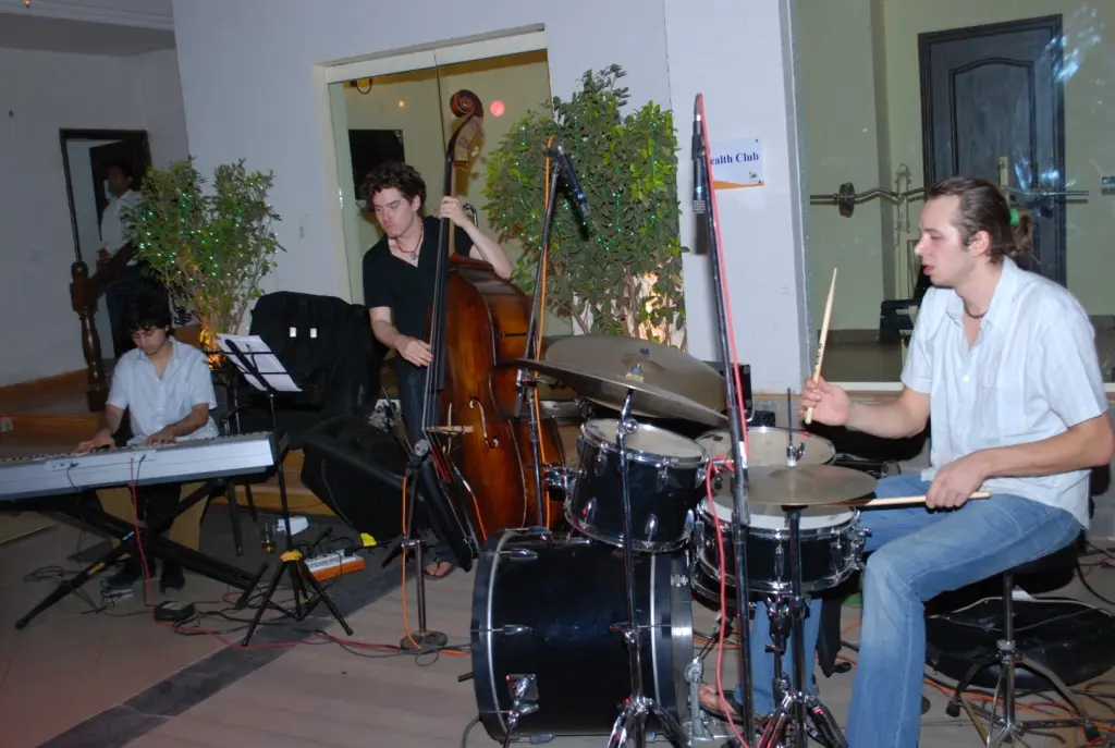 26th December 2009, La Oasis in Anjuna still had its Christmas lights on reflecting in the blue pool while people relaxed beside it, sipping on cocktails and spicy tidbits, engrossed in interesting banter. Three young men from Paris were in Goa on their Bonjour India tour. After a beautiful performance at Alliance Francaise, Heritage Jazz invited them for an encore performance in Anjuna. Sharik, Gael and Thibault took stand below the running lights and the conversations around stopped just as they began. Sharik introduced the band to the guests and the music began to flow. These Parisian lads of diverse backgrounds and cultures met in the city of love about 2 years ago in search of a common musical vision; their talent, style and passion combined to form their novel, creative sound. Their unique compositions are the result of combining different influences such as classical, hip-hop, rock, and jazz while heavily rooted in improvisation. Blending colors and shapes with grooves and urban rhythms, this trio respects traditional styles while finding the perfect 21st century sound.