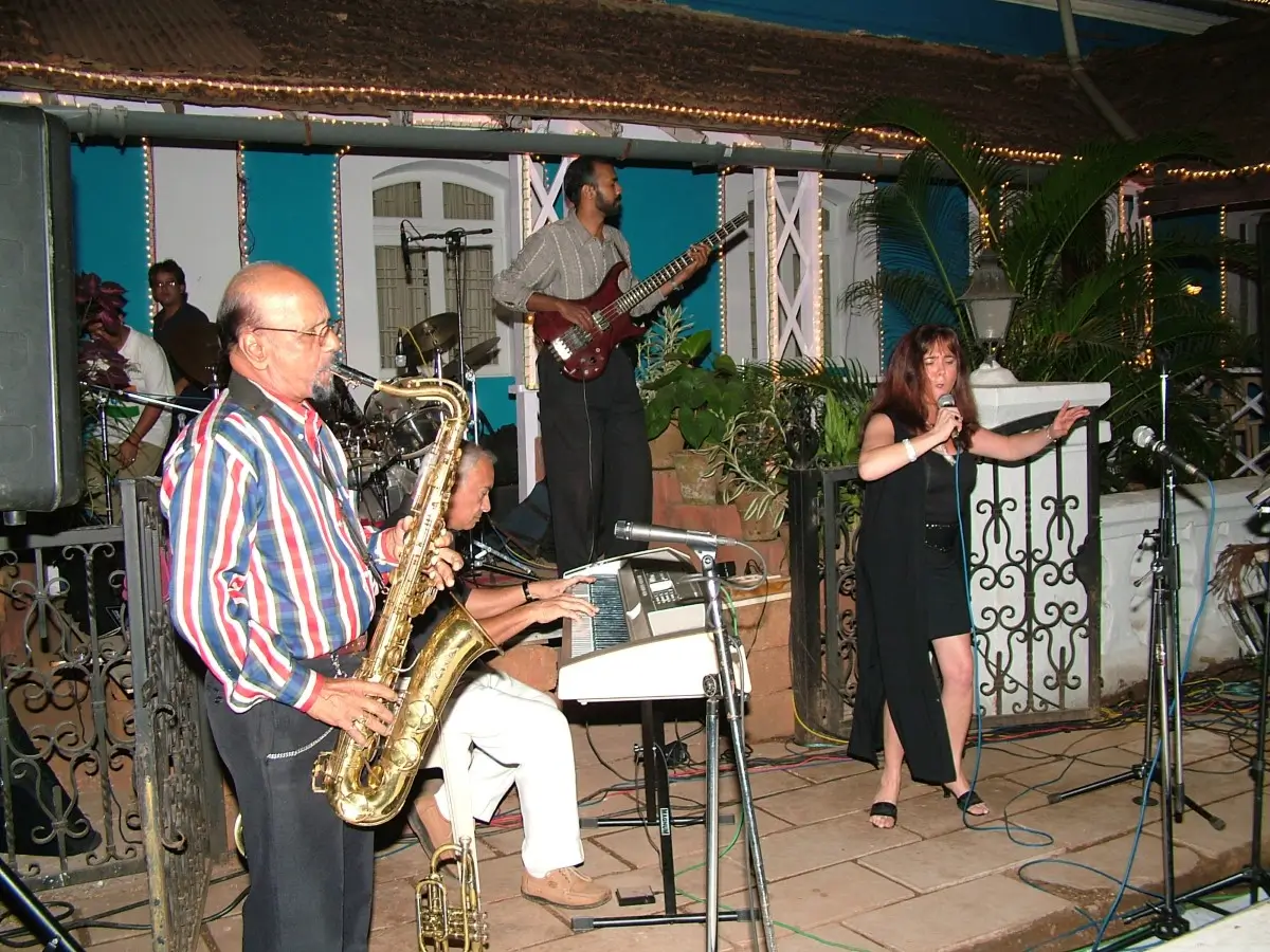 The Heritage Jazz Yatras was again held at Gonsalves Mansion on the 19th of December 2004 with the exciting troupe of funk jazz exponent Tala Faral taking the crowd by storm. Tala, the diminutive saxophonist who is originally from Madagascar , settled for a long time in India and now back in the US of A, kept the crowd on its feet with the foot-stomping jazz funk and jazz rock music he is so famous for. The show was sponsored by State Bank of India who were advertising their much sought after loan scheme, The Heritage LoanScheme, which is designed to finance the purchase and refurbishment of old heritage homes in Goa. Ramesh Kumar, Chief General Manager of State Bank of India went out of his way to ensure that the show was the show piece of the bank and without his help, Heritage Jazz Yatra would not have been the premier show it is today.