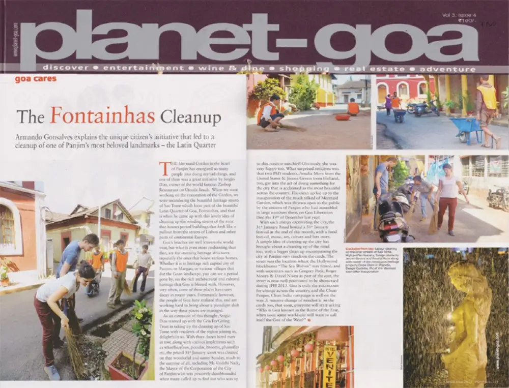 We at Goa ForGiving participated in the cleaning up of Sao Tome in Fountainhas, the most beautiful Heritage zone in Goa. The clean up was led by Sergio Dias, owner of Zeebop restaurant in South Goa, along with Armando Gonsalves, Daegal Godinho, our Volunteers from the US, Amalia Mora & Jeroen Gevers among others. A lot of people participated in the cleanup, including the residents of Sao Tome. The whole idea behind cleaning up the area was to save and preserve our beautiful Heritage sites.