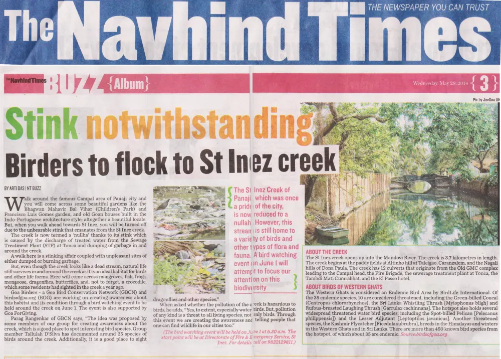 We are happy that we have been able to reach out to a large section of people and it is great to see more and more people and groups coming forward and getting involved with it. Recently we had a bird walk along with Goa Birders along the Campal Creek. To our surprise we recorded a count of 39 bird species in an hour. This goes to say that the Creek also plays an important role as a natural habitat to some of the bird species.