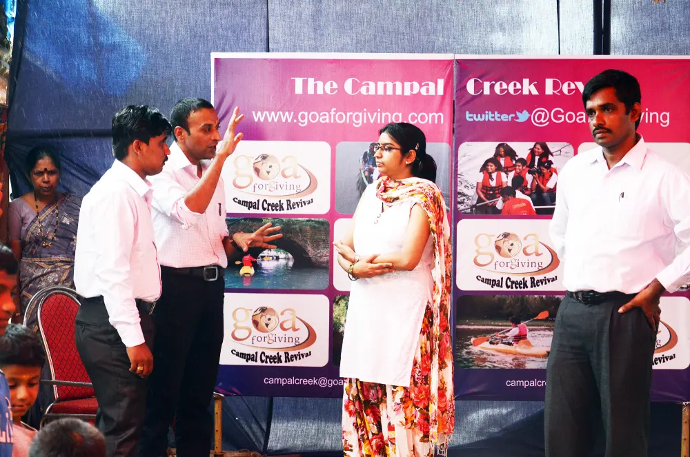 On 15th August, 2014 Independence Day, Goa ForGiving along with The NIMR (National Institute for Malaria Research and VHSG (Voluntary Health Service Goa) organised an Environmental Health Workshop at the St. Inez Settlement. Our three organizations shared information with these “privileged” people, and the effort also included a skit that showcased the mosquito breeding problem in that region, besides also enthusing the participants in introducing “guppy” fish into the Creek so that mosquito breeding is contained by this species known for its penchant foreating up mosquito larvae.